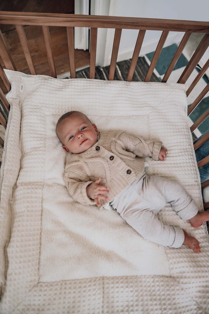 A playpen is not complete without a soft playpen mat that comforts your baby while lying down or playing. After your baby gets to big for the playpen the mat can also be used as a play mat on the ground. The lining is stitched along with the seams, so it stays in place during washing. Koeka produces playpen mats in different sizes, materials, styles and colors, so there is always a playpen mat that suits your interior. Both sides of this playpen mat differ so actually it’s two-in-one!